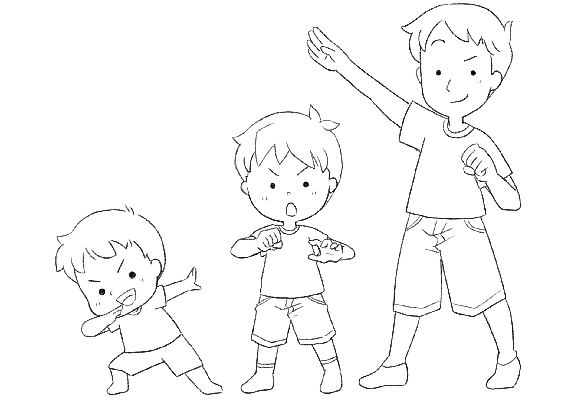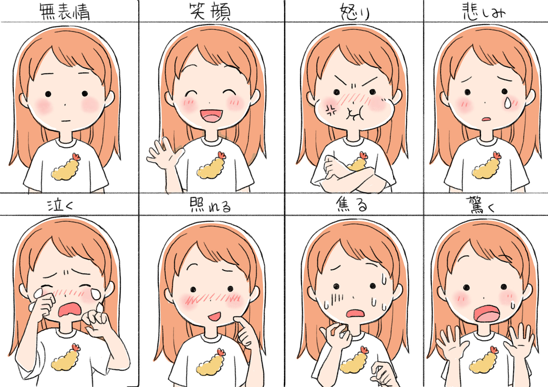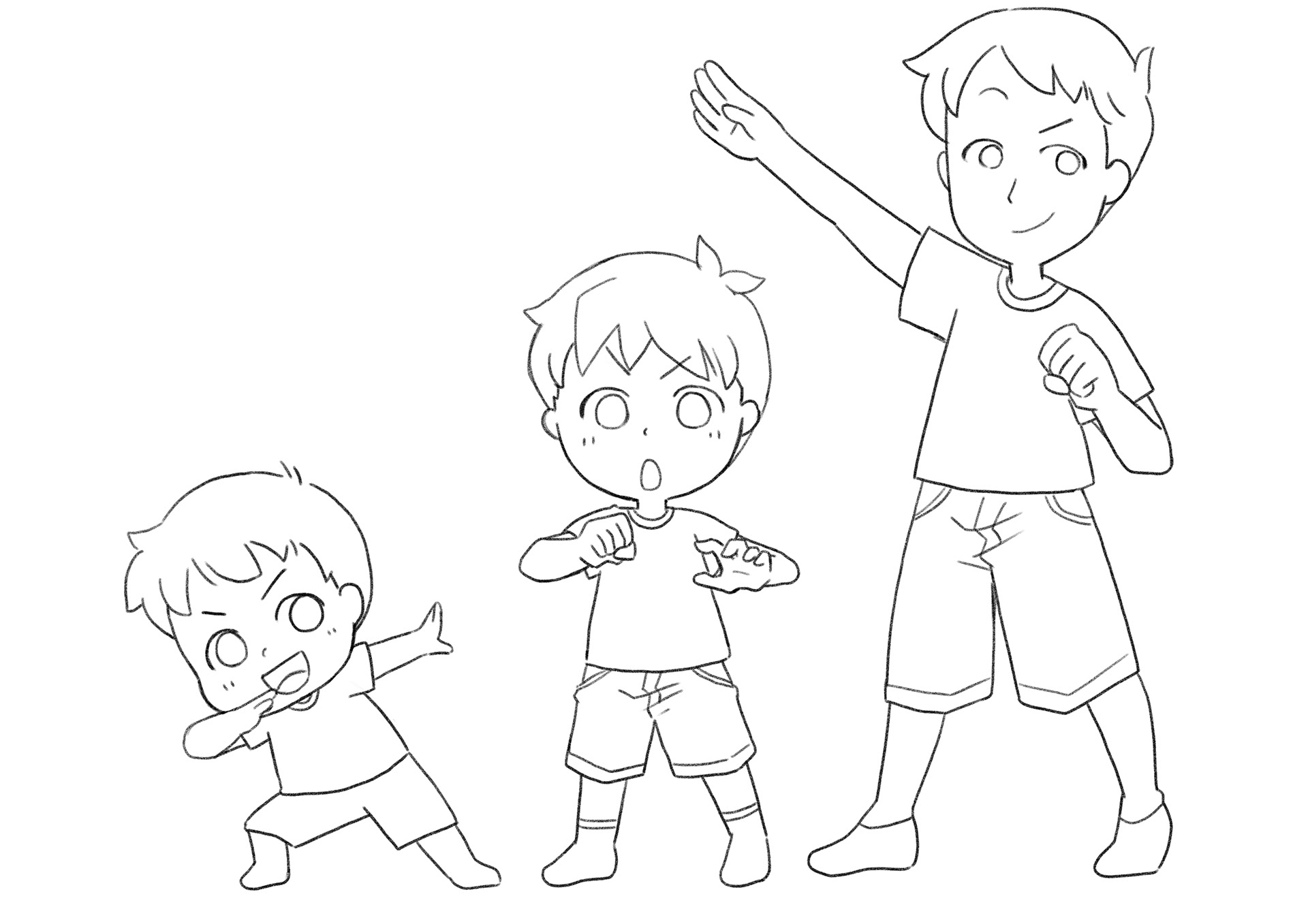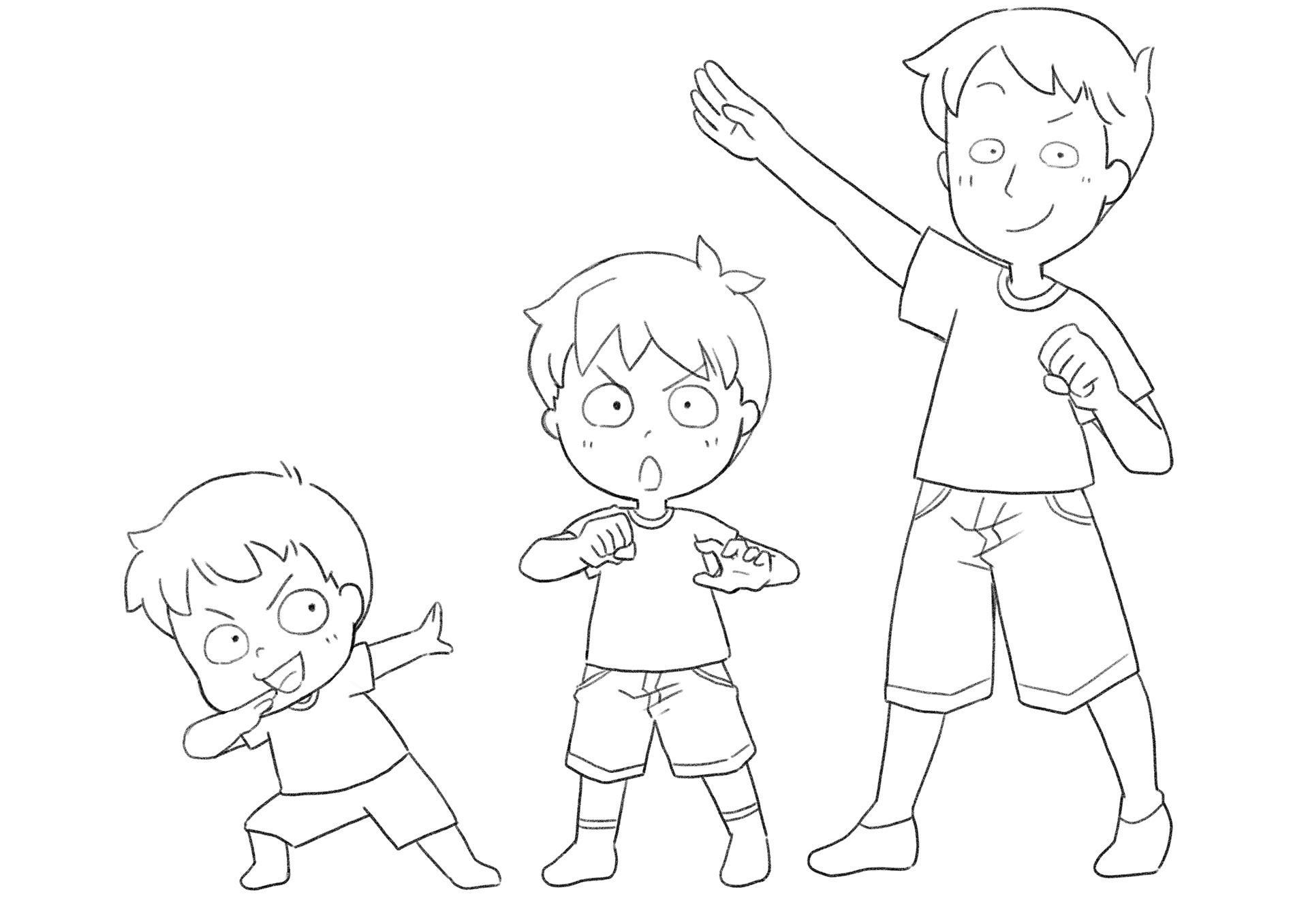 シンプルなタッチでの表情の違いのラフです。